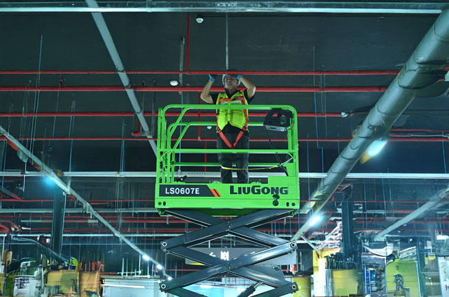 A Plataforma Elevatória LiuGong LS0607E é uma PEMP tipo tesoura elétrica compacta, ideal para trabalhos em altura em espaços confinados, com 7,8m de altura de trabalho, capacidade para 230kg, motores elétricos silenciosos (AGM ou Lítio), e funcionalidades como alarme de bateria, luzes de aviso, e mobilidade que permite subir/descer/avançar/recuar, oferecendo operação segura e eficiente, baixo ruído e sem poluição.